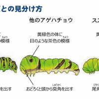 トップページ > 調査に参加する > 調査詳細 > 対象種詳細 対象種詳細 キアゲハ 分類 チョウ目 アゲハチョウ科 生きものの特徴 幼虫(ようちゅう)時代にミツバやニンジン、パセリなどのセリ科の植物を食べるアゲハチョウの仲間。幼虫は太くて毛のないイモムシで、体長は約5cm、黄緑色と黒色のしま模様(もよう)で、黒色のしま模様の中にオレンジ色の点模様がつきます。 分布 北海道・本州・四国・九州 見られる場所の目安 河川敷(かせんじき)、庭先、公園などの草地 見られる季節の目安 幼虫:春~秋 似ている種類との見分け方 黄緑・黒・オレンジ色をしたイモムシはキアゲハの幼虫しかいませんが、他のアゲハチョウの仲間とスズメガの仲間は体の形が似(に)ています。 他のアゲハチョウの仲間も、キアゲハと似た大型で太くて毛のないイモムシですが、体の色が黄緑色で、胸(むね)に目のような形をした丸い模様がつきます。スズメガの仲間も大型で太くて毛のないイモムシですが、お尻(しり)の先に尾角(びかく)という突起(とっき)があります。 なるほどコラム アゲハチョウの仲間の幼虫は、敵(てき)に襲(おそ)われると、頭の先から臭角(しゅうかく)というくさいにおいの出る突起を出して、敵を驚(おどろ)かせます。キアゲハの幼虫はオレンジ色の臭角を出します。幼虫を見つけたら、枝(えだ)で“そーっと”突(つつ)いてみては?どんなにおいがするのか、レッツトライ! キアゲハ幼虫 似ている種類との見分け方 もどる