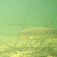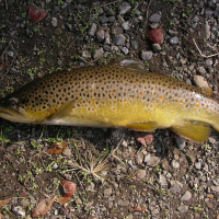 トップページ > 調査に参加する > 調査詳細 > 対象種詳細 対象種詳細 ブラウントラウト 分類 サケ目 サケ科 生きものの特徴 最大体長100cmに達する大型のサケ科魚類。背面はやや緑がかった褐色~黄色,腹部は銀白色。体側に大型の黒斑と白や青色で縁取られた朱赤色の斑点が散在する。3~4歳魚で20~50cmになる。一部の水域では降海型(Sea trout)の出現が知られ海洋を経由して分布域を拡大している可能性が指摘される。 分布 ヨーロッパ~西アジアが原産地。日本へは1877~1926年に米国からカワマスまたはニジマス卵に混入して輸入された。 生息環境・見つけられる環境の目安 河川や湖沼。ニジマスより中底層に生息する。水温が低く、酸素が豊富な湖沼、急深な河川の岩石や倒木の陰。 類似種との見分け方 ニジマスに似るが体側に虹色の縦条はない。 影響 在来種の捕食や資源を巡る競争。また一部イワナとの交雑が報告されている。影響を受ける生物としては、同所的に生息する魚類一般、イワナ、ヤマメ、ウグイなど。 対策 漁具を使用しての捕獲。移植禁止の徹底。 ブラウントラウト(上高地明神池)(撮影:清水義雄さん) ブラウントラウト ブラウントラウト もどる